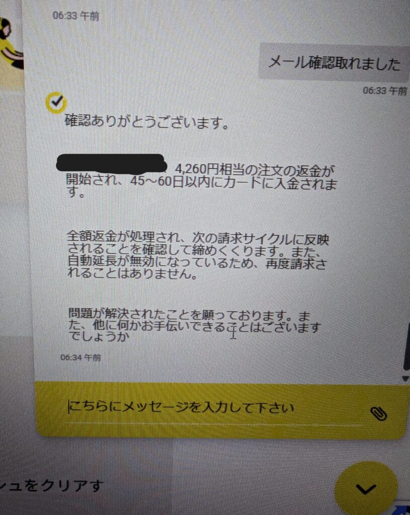 色々なことを考慮していただき返金処理をさせていただきました、、、