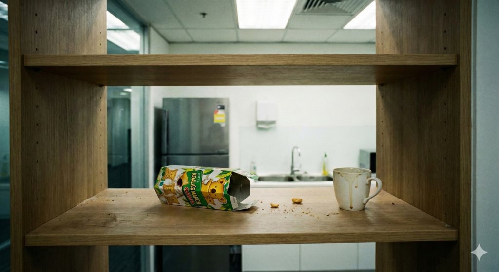 メモなどもせずに会社の休憩場所の冷蔵庫の横にあるお菓子スペースに置いたのが、朝の出勤後の午前9時30分頃、、、