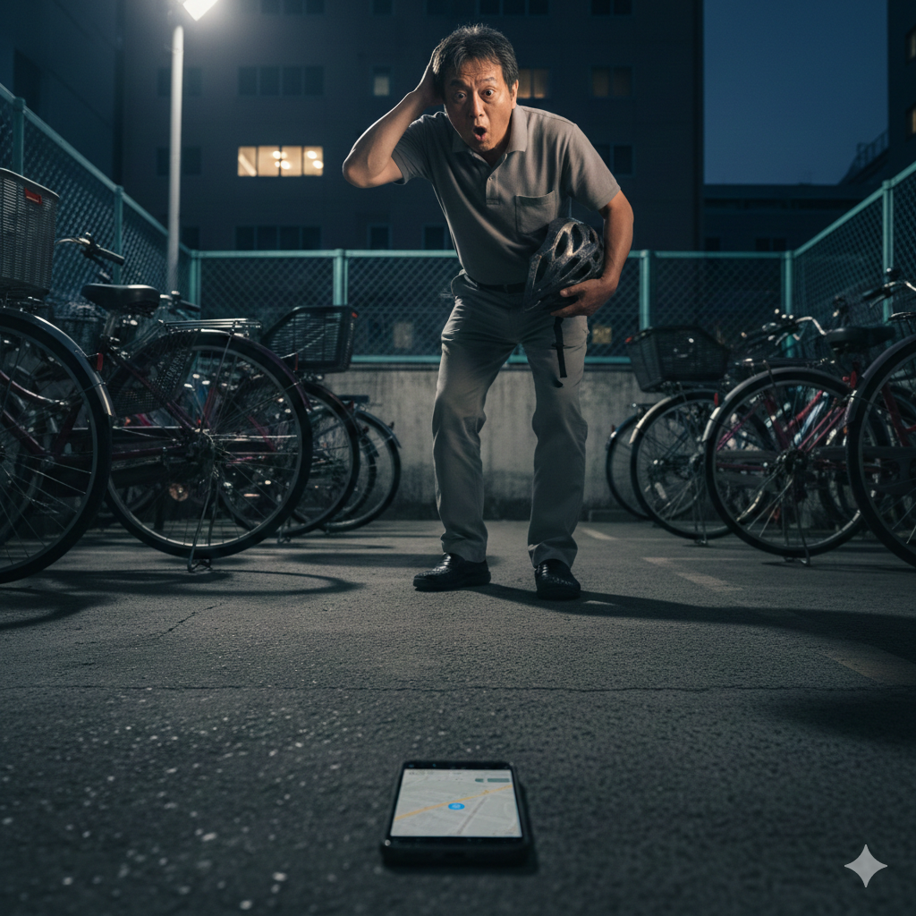 そんなこんなで、やっと帰れる…と着替えを済ませ、いつものように自転車置き場へ向かうと…