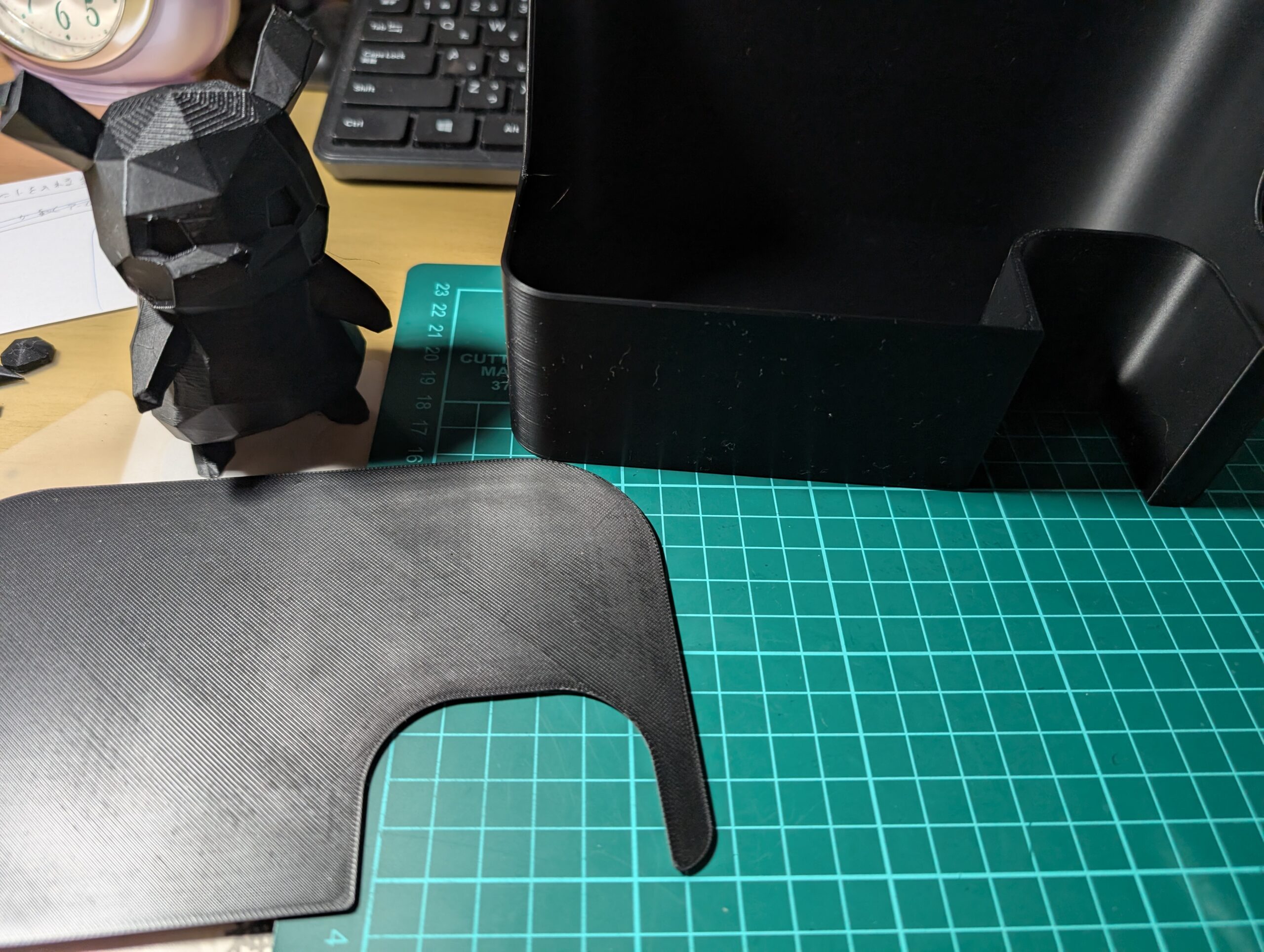 これをプリントして本体の上部にAMSを載せることで、デスクの専有面積を一気に減らすことができます。まさに、3Dプリンターの問題を3Dプリンター自身で解決するという、この趣味の醍醐味ですね。