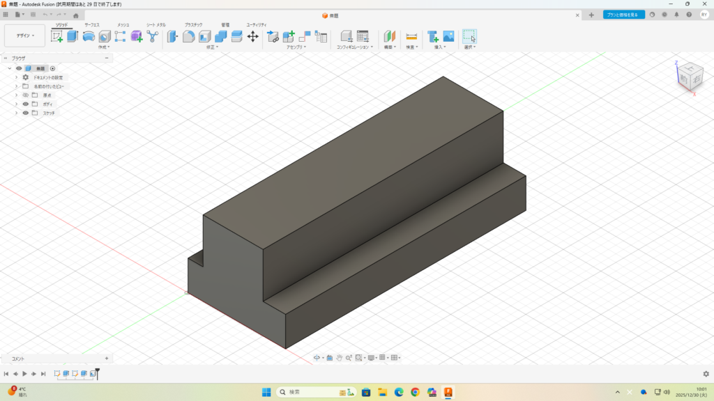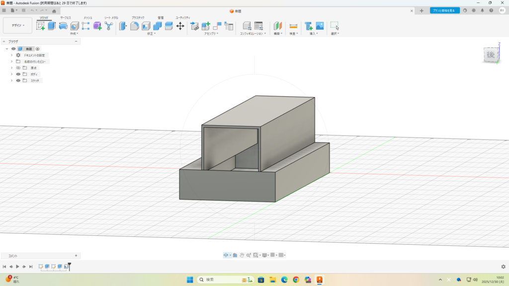 今回挑戦したのは、世界標準の3D CADソフト**「Fusion 360」**です。 右も左もわからない状態でしたが、まずは以下のテスト工程を自分に課しました。