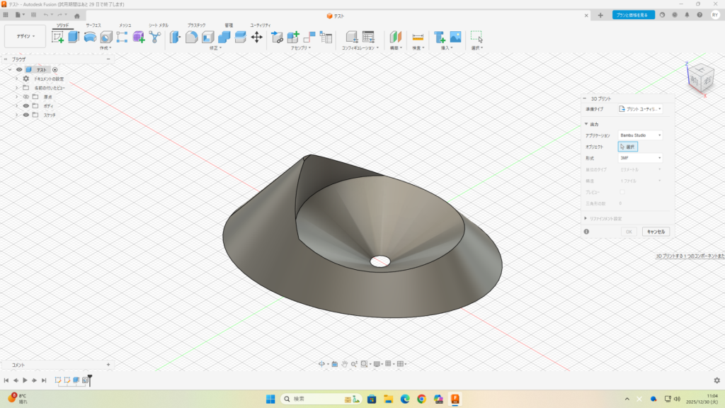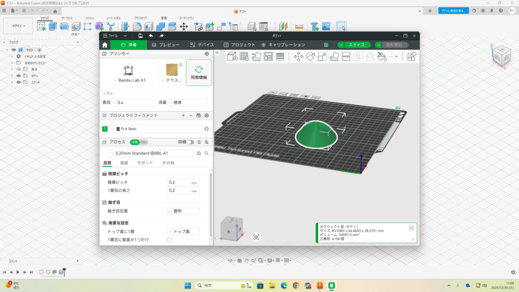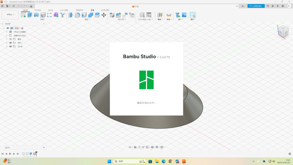 正直、操作はチンプンカンプンな部分も多かったですが、いざBambu Studioに自分の作った形が現れた時は「おぉ……!」と声が出ました。