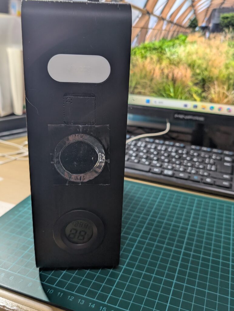 • 隙間の密封: 穴が開いている箇所には透明テープを貼り、気密性を確保。