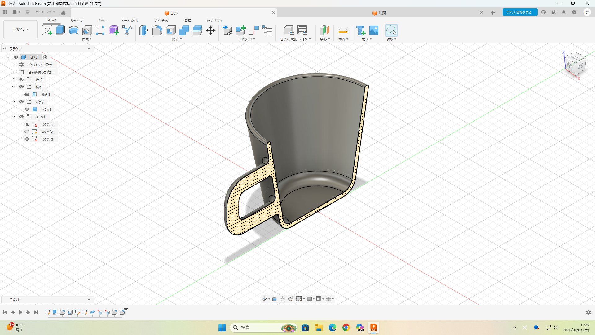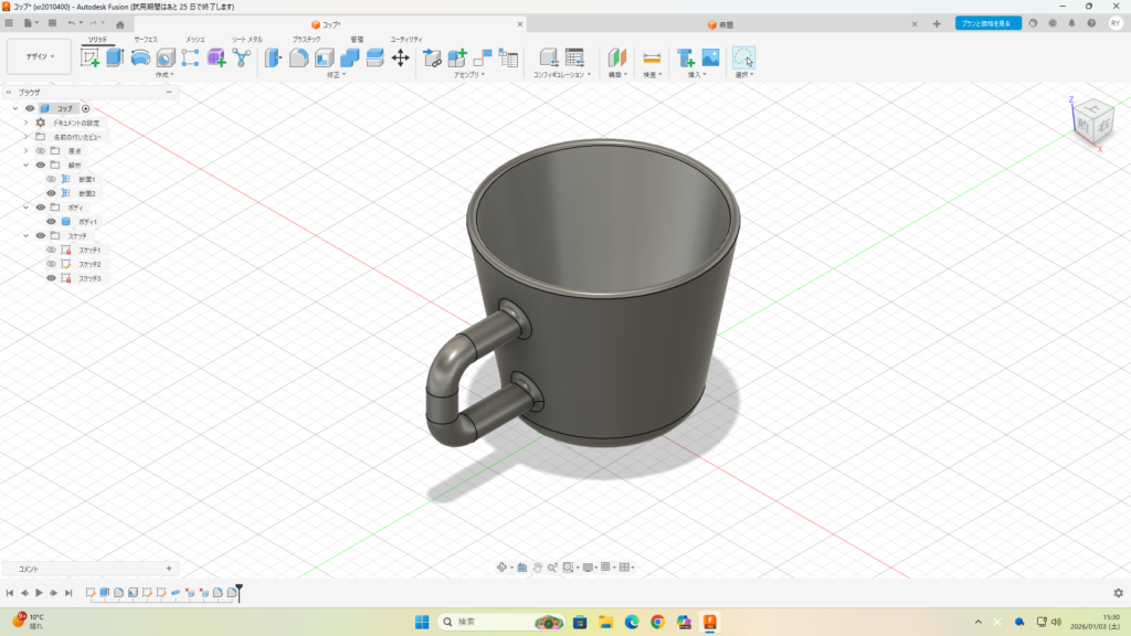 #2026.1.3 【Fusion 360独学】YouTubeでコップ作成に成功!「何を作るか」迷えるおじさんの救世主は画像トレース?