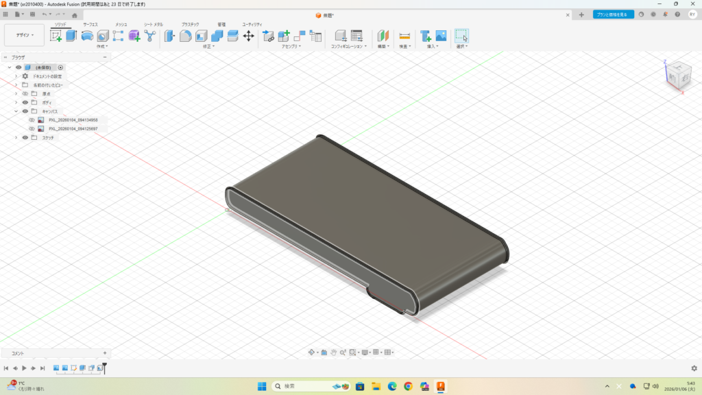 そんなバタバタした一日でしたが、出勤前の午前中、これだけは欠かしませんでした。 Fusion 360のモデリング練習、30分一本勝負です!