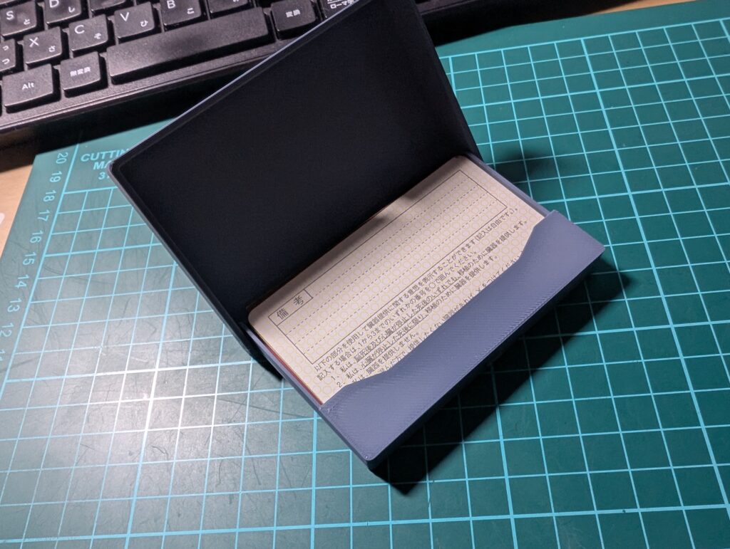TPEに苦戦する一方で、嬉しい報告も。 昨日夕飯を作りながら再設計した、**「ヒンジ式カードケース」**が完成しました!