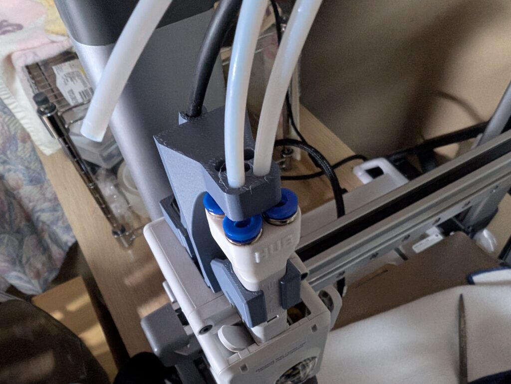 ガックリしていても始まりません。 すぐにデータを修正(あるいは用意)して、現在は**「HUB延長パーツ」**を絶賛プリント中です。
