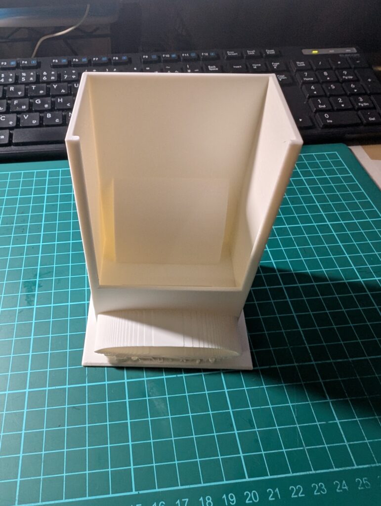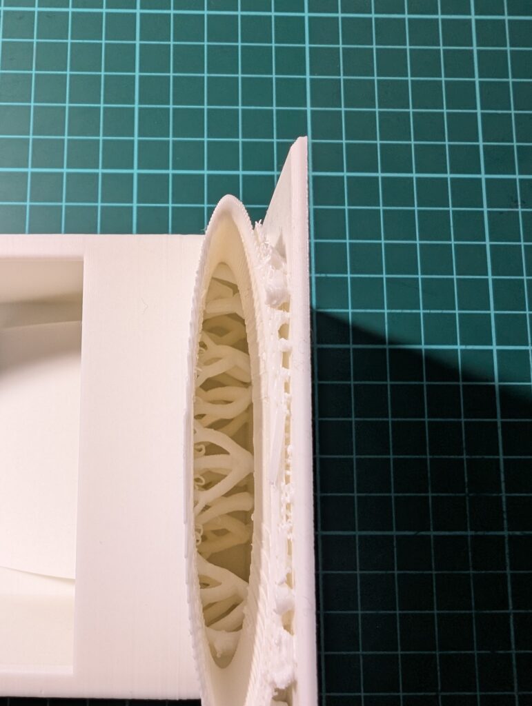今回作ったのは、電源不要のパッシブタイプ。 スマホのスピーカーから出る音を、3Dプリントした筐体の中で反響させて前方に飛ばす仕組みです。