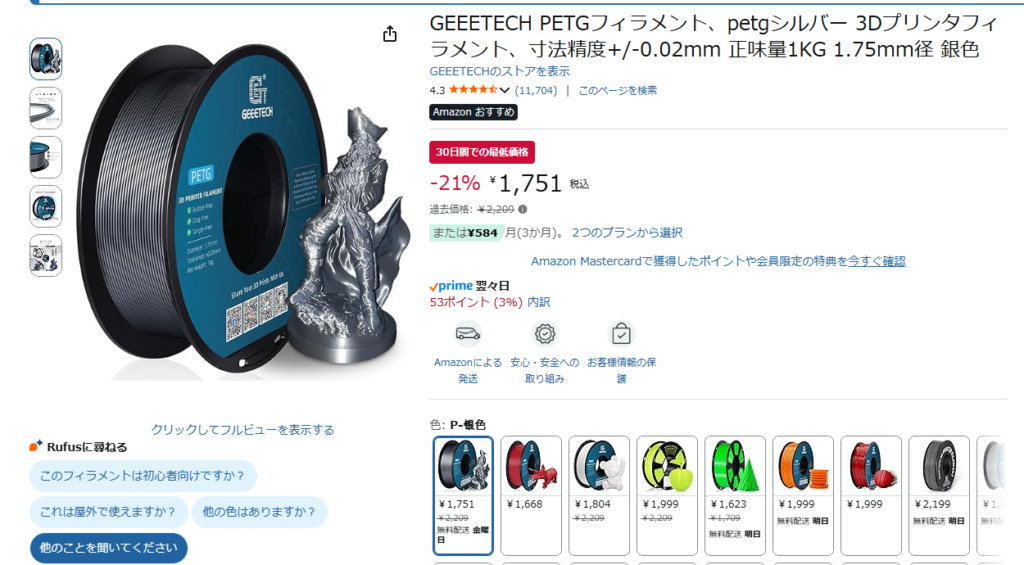 現在、3Dプリンターの方は一時休止中。 というのも、次に使う**フィラメント(材料)**の購入を検討しているところなのです。