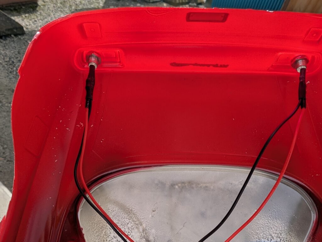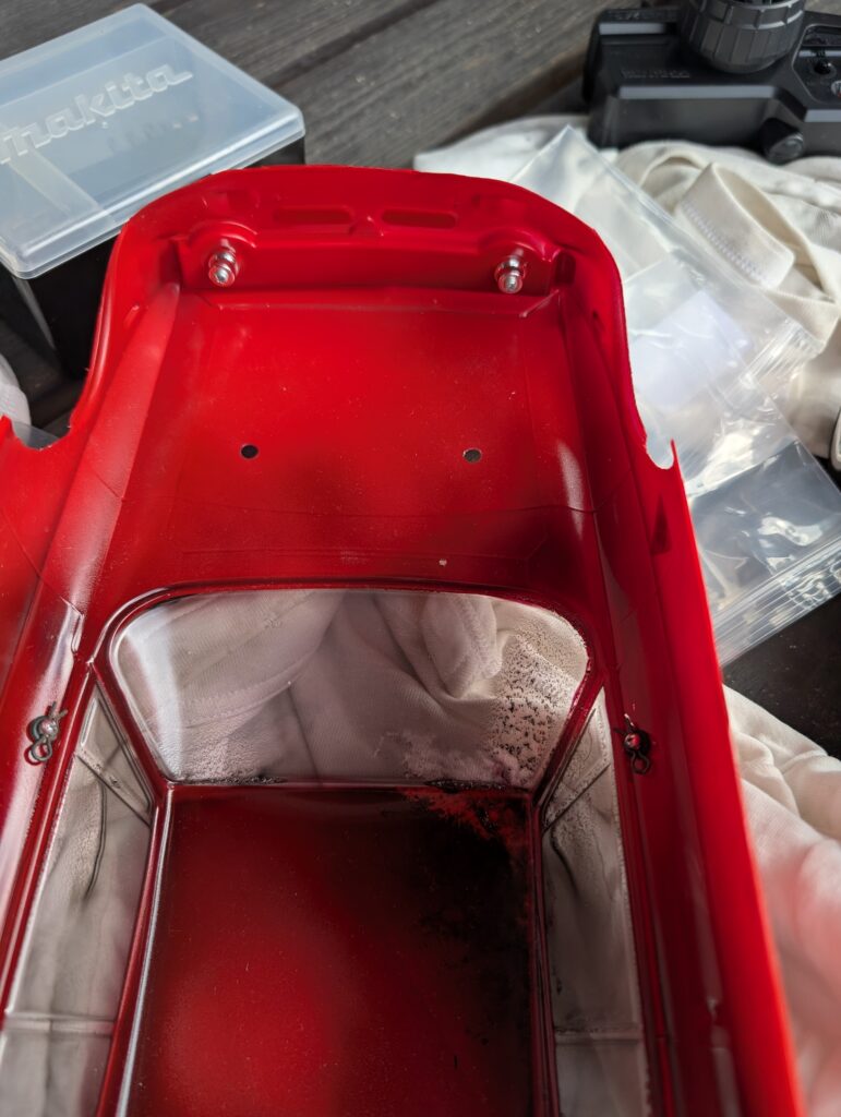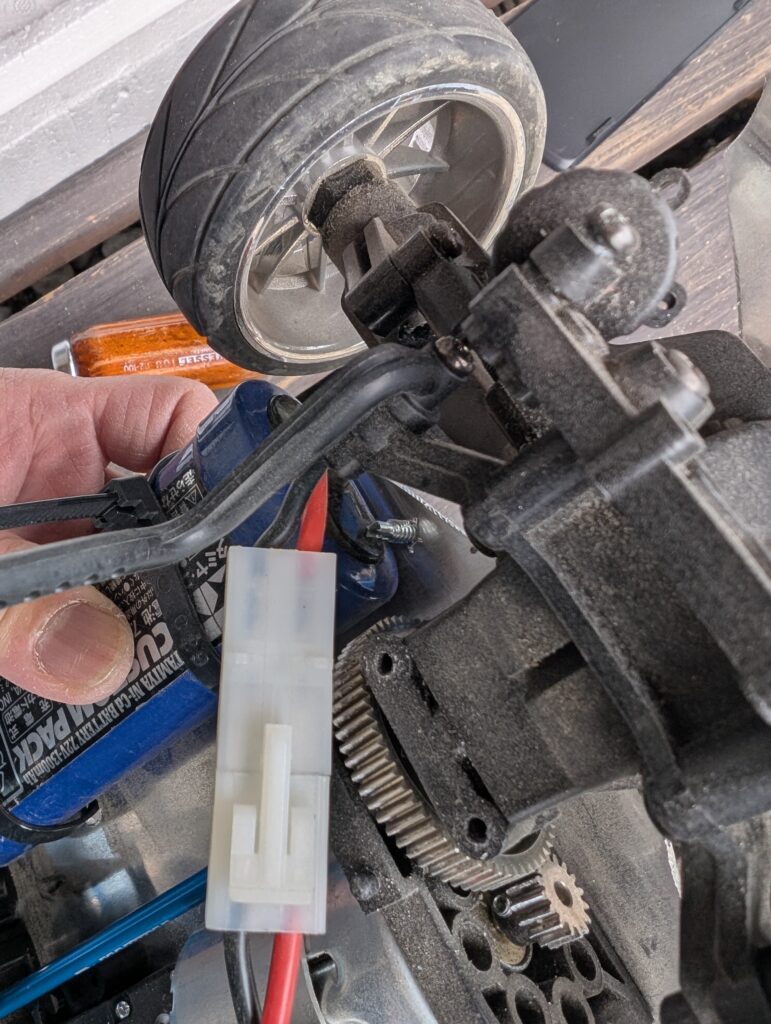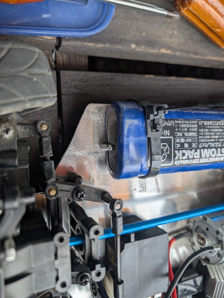 あとはバッテリーがやっぱりよく動いてしまうのでストッパー代わりにボディの下からタッピングビスでストッパーにしました、、、