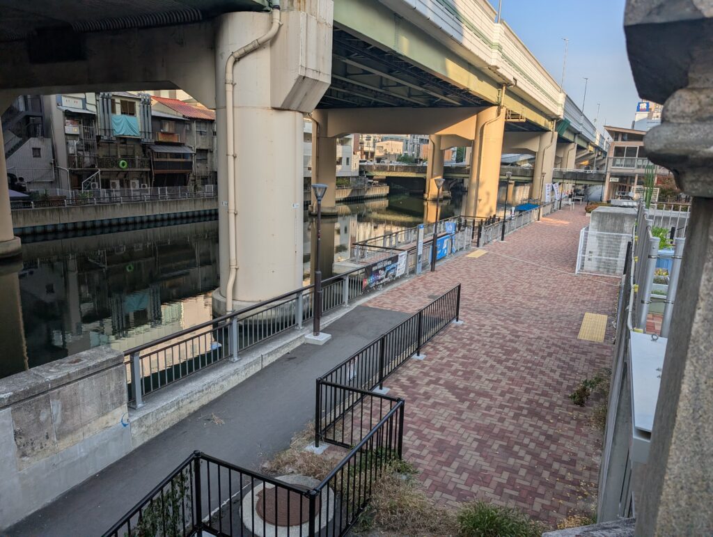 その建物の目の前にある川、、、道頓堀でしょうかね、、、わかりません、、