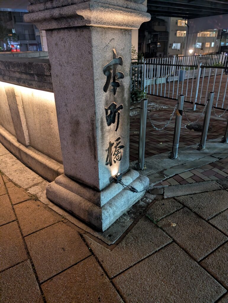 帰り道の橋、、、川の方ではプロジェクションマッピングが始まっておりました、、