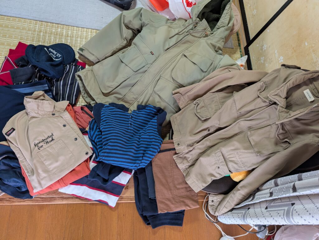 今日も行くということで私のタンスに眠っていた服、ハンガーに掛かっていたコートなど着ないものをチョイス、、、
